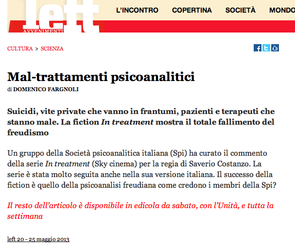 In questi giorni nella Gazzetta ufficiale è stato sancito che i medici generici possono prescrivere antipsicotici senza il parere di uno specialista ed un piano terapeutico. Ciò significa che la psichiatria organicistica, che è dominante, è stata deligittimata ed è assente nella scena sociale nella quale emerge una fenomenologia della psicosi di cui il femminicidio fa spesso parte . Venti coltellate di un adolescente alla fidanzatina ed una tanica di benzina per bruciarla viva a Corigliano Calabro, leggiamo nella stampa di questi giorni. Solo uno schizofrenico può compiere un gesto così disumano . Le famiglie, gli psichiatri, i servizi territoriali, non intercettano queste patologie , che richiedono del tempo per svilupparsi, fondamentalmente perché sono incapaci di comprenderle vivendo tutti noi in una normalità che è intrisa di false credenze, di pregiudizi ideologici e religiosi che sono veri e propri paraocchi. Adottando inoltre il modello americano del DSMV e della psicofarmacologia la psichiatria ha completamente perso il contatto con la realtà umana e con la società in cui si sviluppano forme di patologia mentale con aspetti nuovi che sempre più frequentemente sfociano nel delitto e nella violenza.