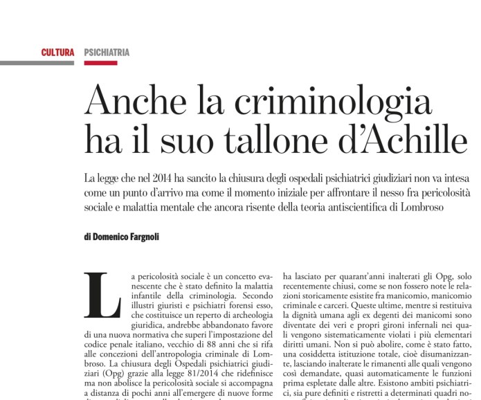 La pericolosità sociale è un concetto evanescente che è stato definito la malattia infantile della criminologia. Secondo illustri giuristi e psichiatri forensi esso, che costituisce un reperto di archeologia giuridica, andrebbe abbandonato favore di una nuova normativa che superi l’impostazione del codice penale italiano, vecchio di 88 anni che si rifaceva alle concezioni dell’antropologia criminale di Lombroso. La chiusura degli OPG grazie alla legge 81/2014 che ridefinisce ma non abolisce la pericolosità sociale si accompagna a distanza di pochi anni all’emergere di nuove forme di custodialismo. Nelle carceri sono state create strutture psichiatriche per il trattamento di coloro che in regime di detenzione vengono denominati “minorati psichici” e per coloro che sono in osservazione psichiatrica per definirne la patologia. È legittimo chiedersi come sia possibile curare un malato di mente in un penitenziario senza fare un uso eccessivo ed improprio degli psicofarmaci considerati l’unico strumento terapeutico. Le REMS sono già ai limiti della loro capienza mentre coloro che sono nelle liste di attesa per entrarvi permangono, con pregiudizio del loro stato di salute, in carcere. Anche I servizi territoriali sono gravati di nuovi compiti, senza che, nella maggior parte dei casi, ci sia stato un adeguato potenziamento, sotto il profilo sia qualitativo che quantitativo, delle strutture di secondo livello come le comunità terapeutiche. Molti degli ex degenti degli OPG sono a carico dei DSM compresi quelli che un tempo venivano definiti psicopatici e che oggi vengono fatti afferire ai cosiddetti disturbi della personalità. Per un numero considerevole di quest’ultimi, in virtù della sentenza Raso del 2005 della corte di Cassazione, potrebbe sussistere un giudizio dì infermità mentale. Nell’attuale panorama sociale la giustizia minorile opera in base a strumenti legislativi specifici la cui idoneità a affrontare le problematiche giovanili merita di essere indagata e discussa. Nei Mass Media poi molti casi di cronaca vengono presentati in modo improprio dalla stampa che troppo spesso tende a confermare il clima di allarme e ad alimentare la sensazione di insicurezza e di pericolo che determina il confronto con la malattia mentale.